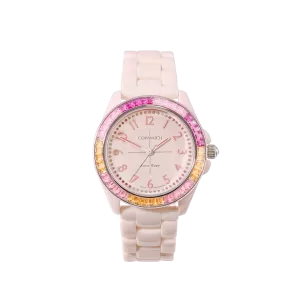 Lunette en céramique rose avec cristaux colorés