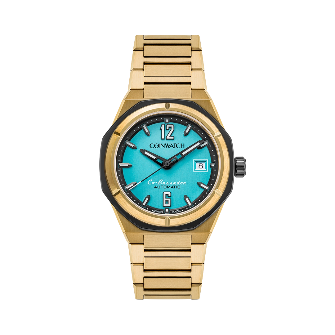Yellow gold PVD with titanium grey PVD